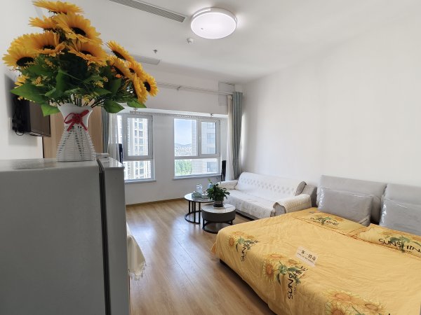 公寓家具家电齐全,有厨房洗手间,和贝斯特酒店同层,办公自住均可,民用水电,地暖,含上网费、密码锁,可短租。地下一层就是家家悦超市,楼下很多便民快餐,生活交通便利!