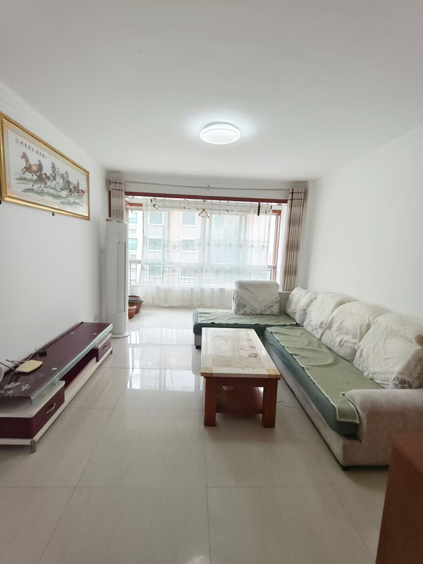 幸福二期框架二楼86平2室.南厅地暖落地窗.家电家具齐全有空调.1200/月年租.