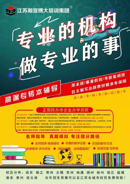 很多同学会问,自己学跟不上怎么办?其实我特别理解,基础薄弱、不知道考点、没人监督,很容易懈怠。这时候就强烈推荐瀚宣博大专转本培训班,它在江苏深耕18年,和18所主考院校紧密合作,能精准掌握考纲动态和命题趋势,还有全职专业师资,英语老师都是专八出身,专业课老师多是对口高校教师,教学质量有保障。